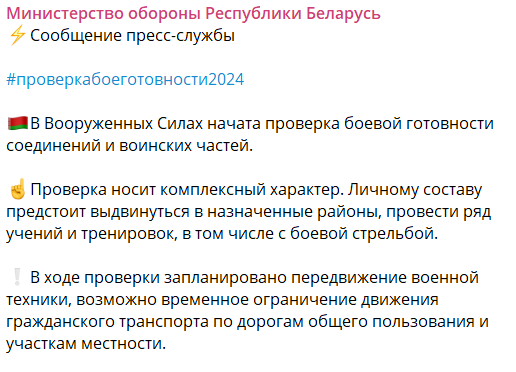 Як зазначається, особовому складу білоруських армійців належить "висунутись у призначені райони, провести низку навчань та тренувань", у тому числі з бойовою стріляниною.